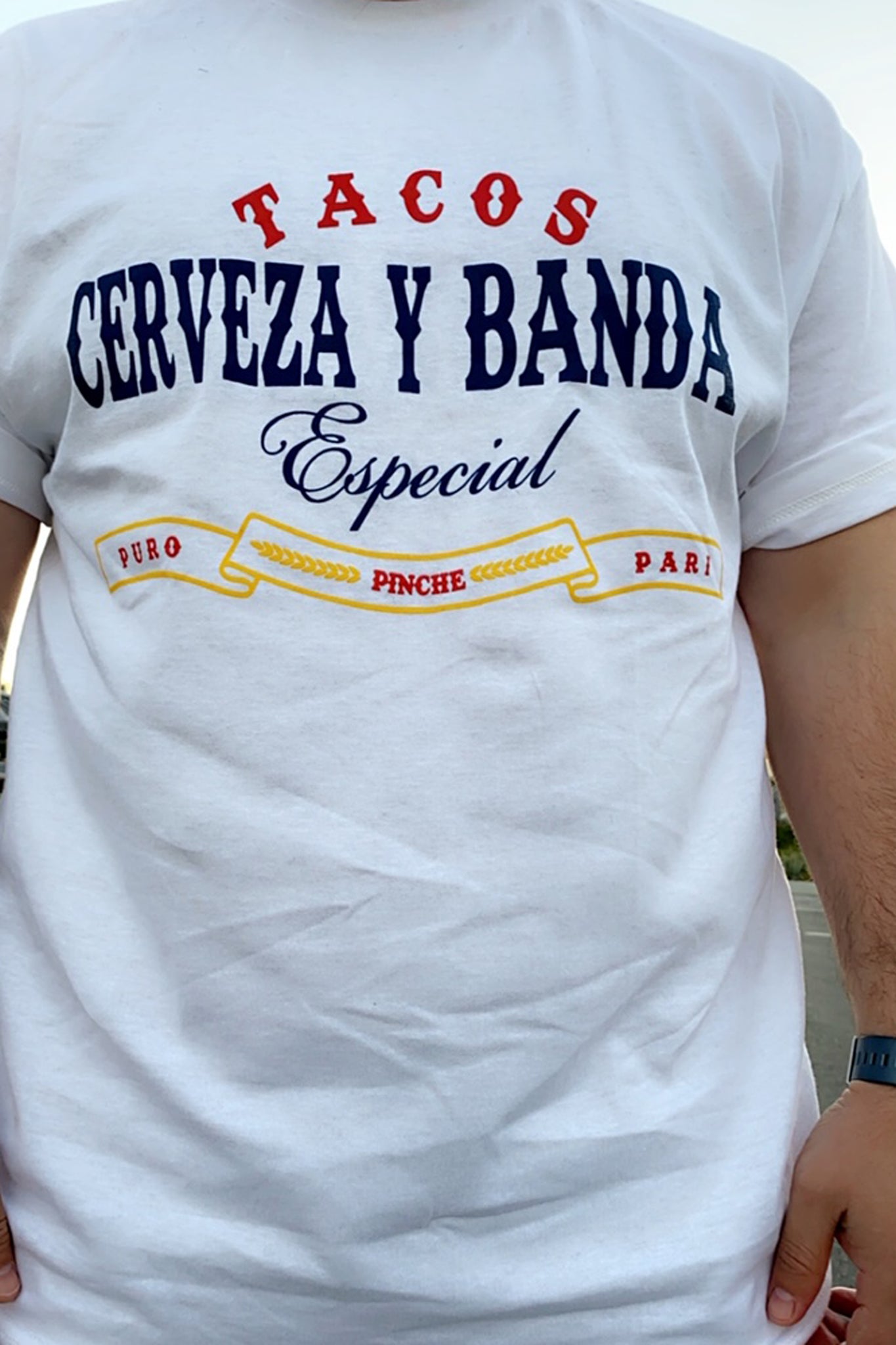 Printed Contents: TACOS CERVEZA Y BANDA T SHIRT